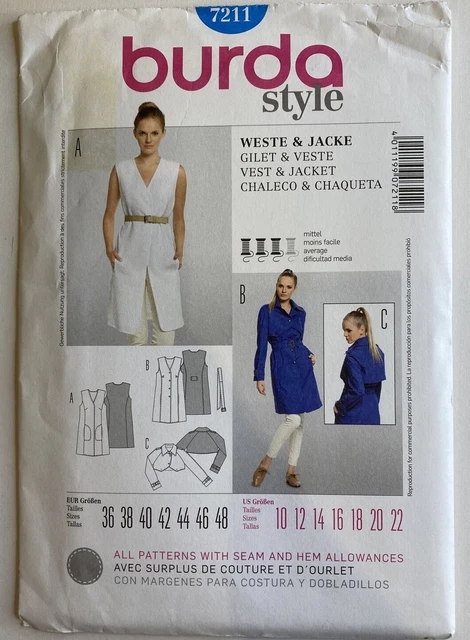 Unisex Waistcoat Burda Sewing Pattern No 7810 Size 6 To 18 34 To 44 Sew Essential